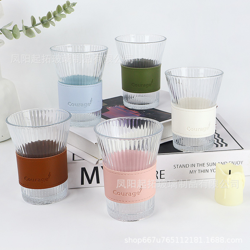 日本式耳かけコーヒーカップ縦紋飲水復古シンプル高颜値家庭用ラテアメリカラテガラスコップ
