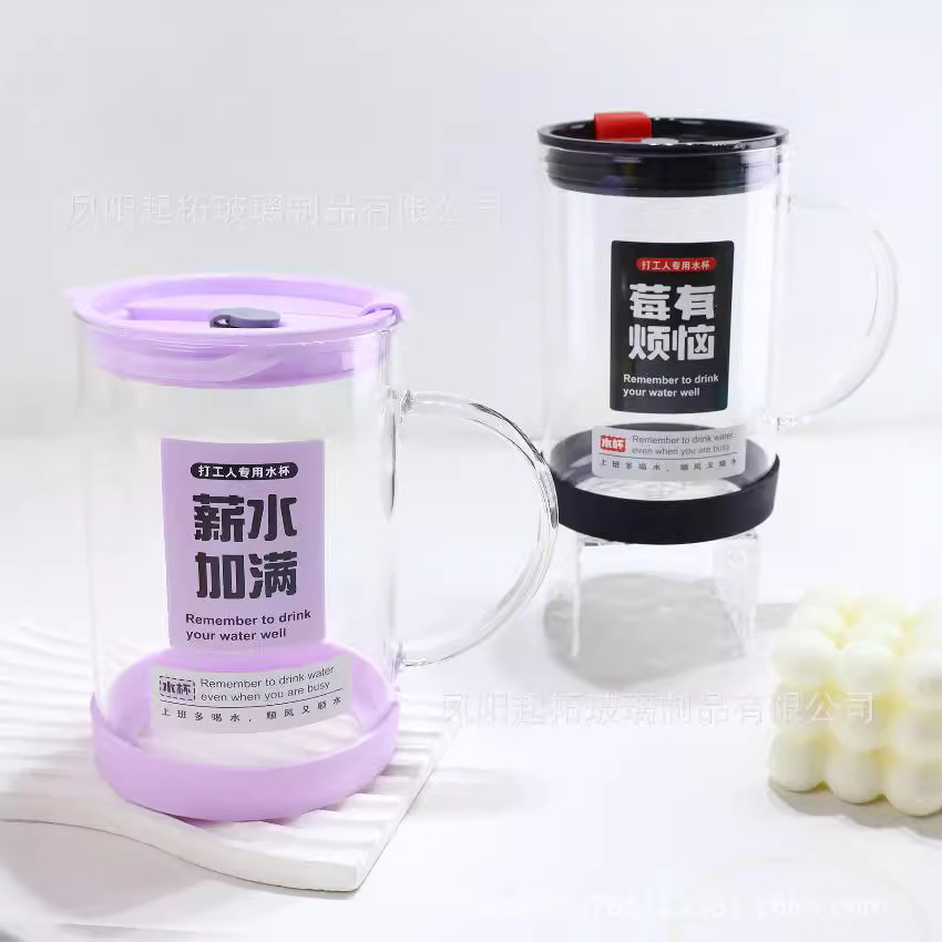 ガラスコップに蓋をした高鵬グラス高顔値グラスカップ耐高温グラス