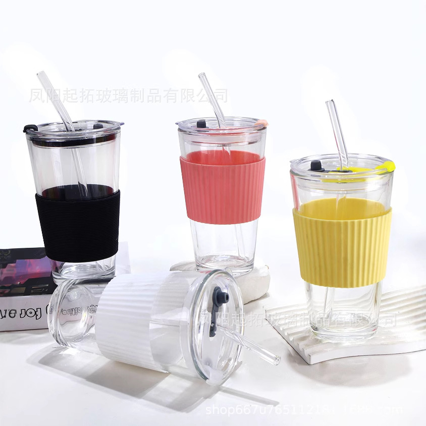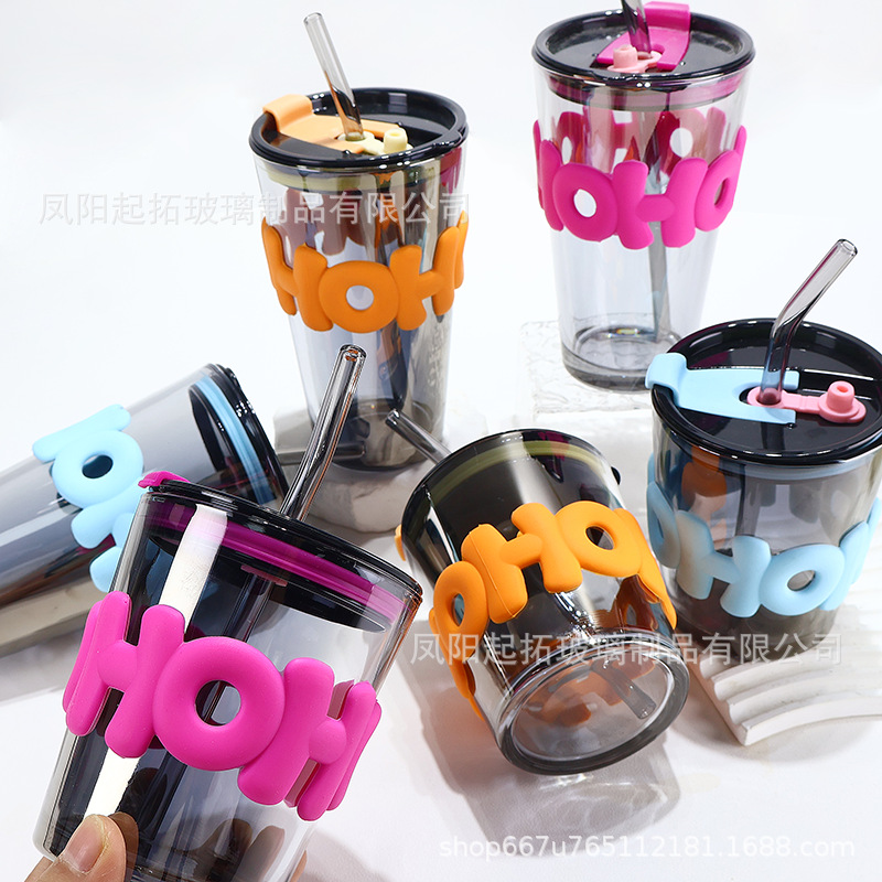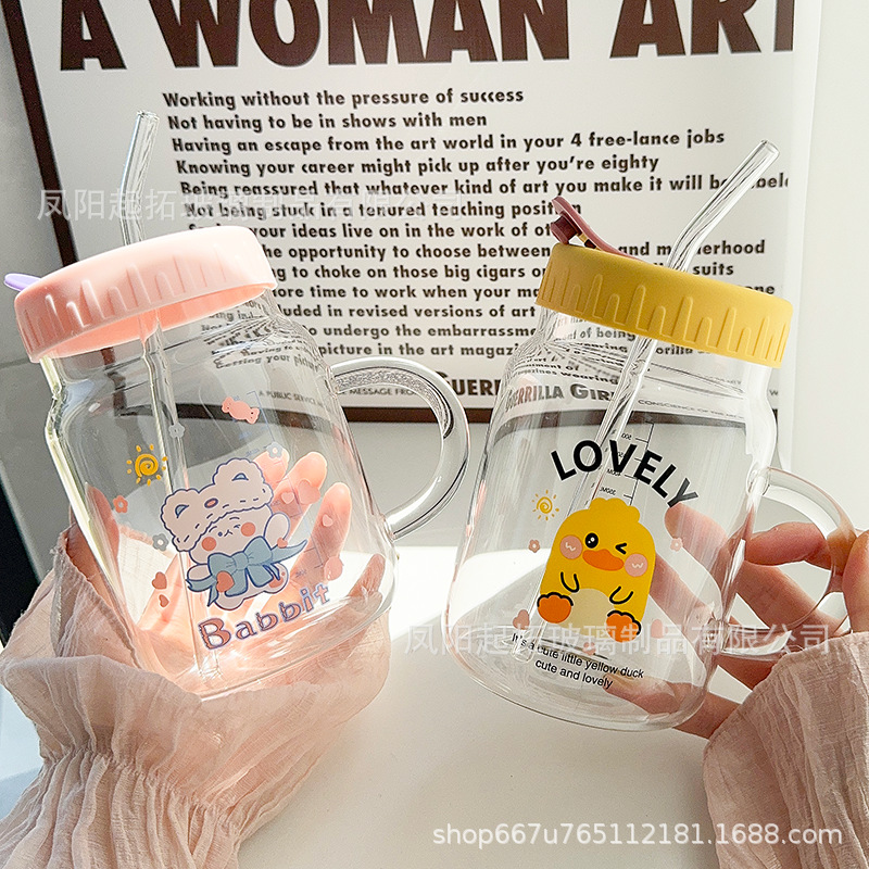 耐高温ハンドルストローグラス高颜値ハンドルカップ家庭用真珠ミルクティー大容量ストローカップ