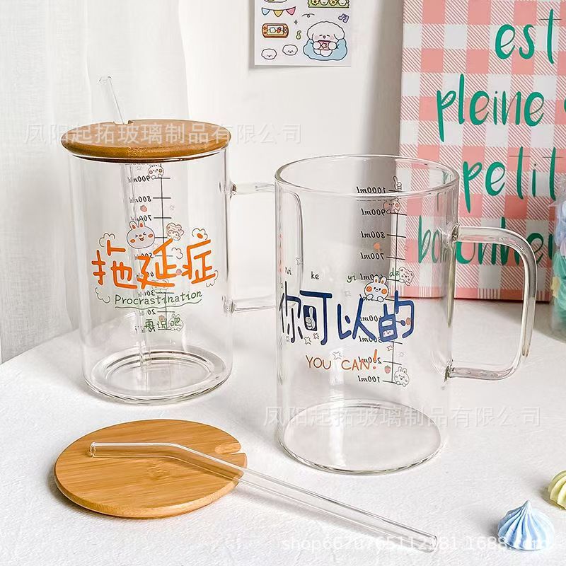 ネット赤insストローグラスミルクカップ家庭用スケールストローカップ高颜値グラスティーグラス