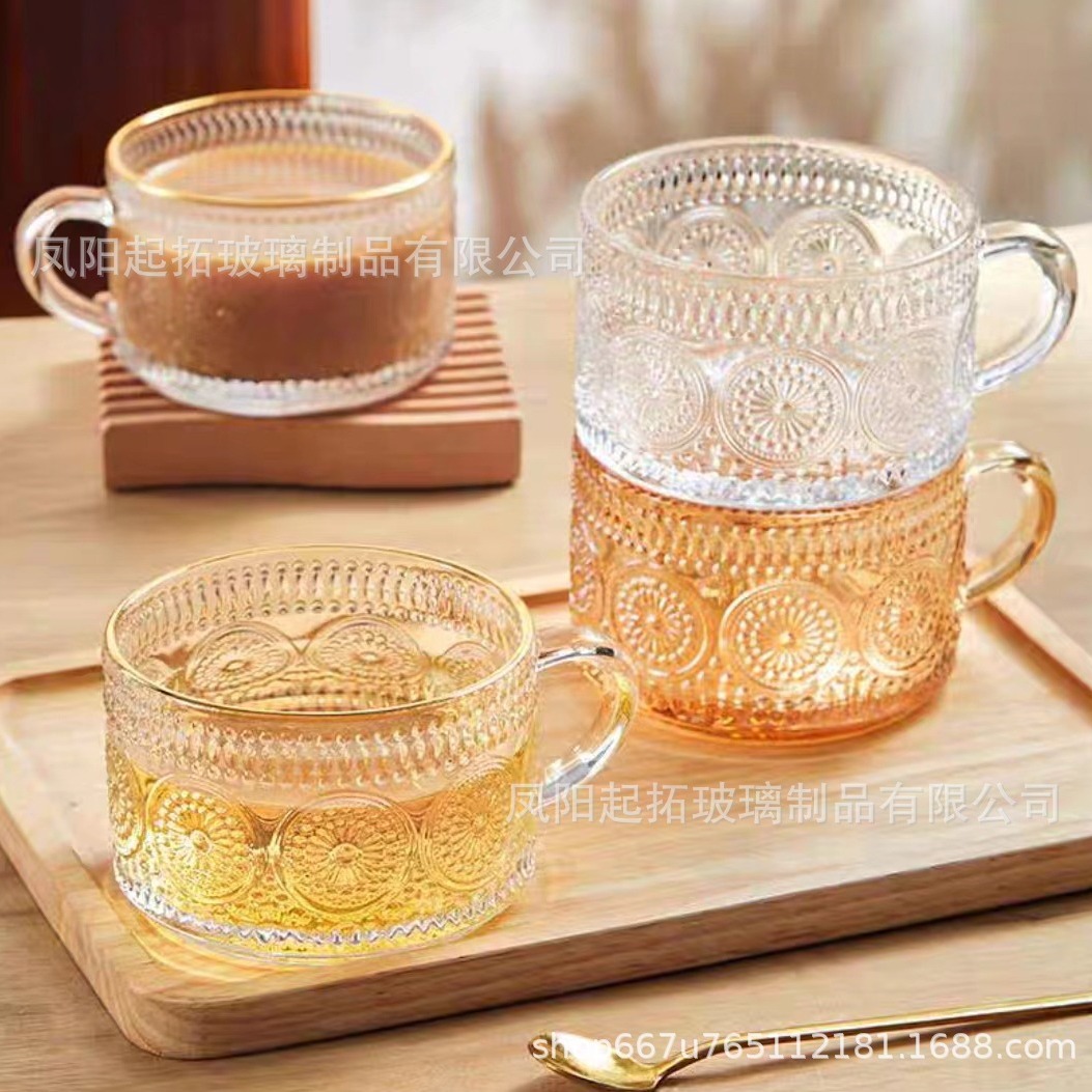 太陽花ガラスカップ朝食カップ牛乳カップ家庭用オート麦カップ高顔値浮き彫りカップコーヒーカッププレゼント