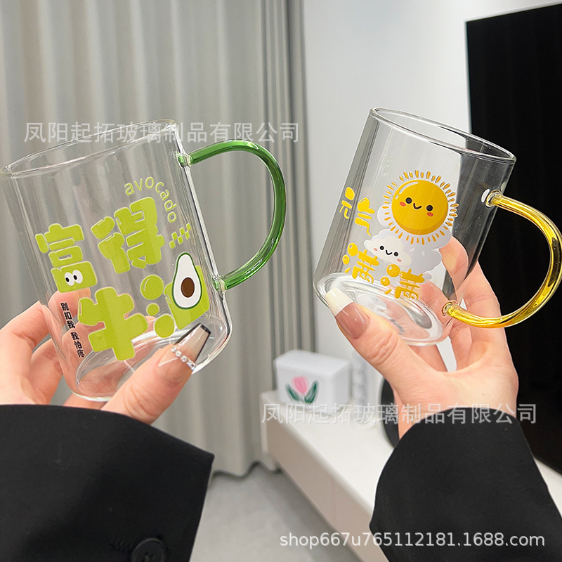 耐熱高ホウケイ酸グラスオフィスカップ女子高颜値コーヒーカップ透明飲料牛乳カップ