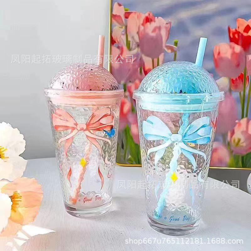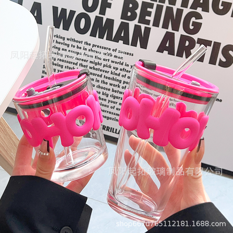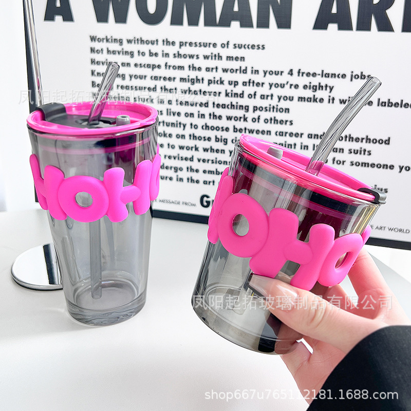 Insカップストローグラス大容量カップ女子マグカップ高颜値オフィスミルクコーヒーカップ