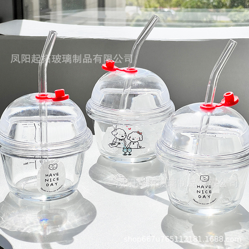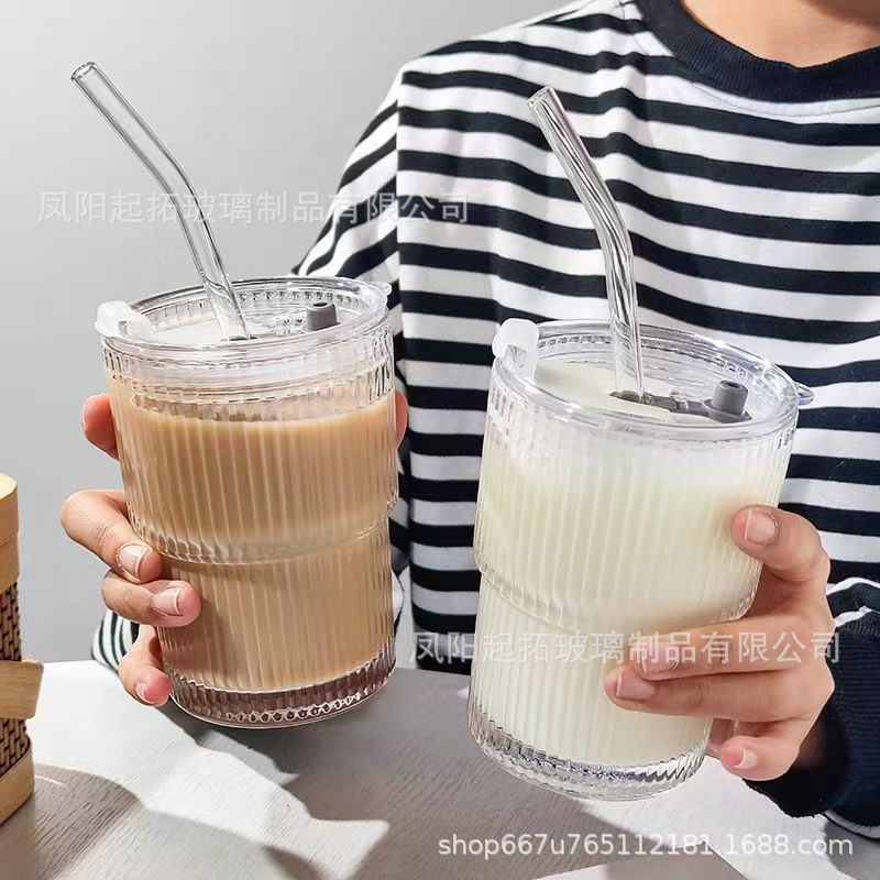 カップins高颜値ガラスストローコップ学生サラリーマン小衆カップコーヒーミルクカップ蓋付き