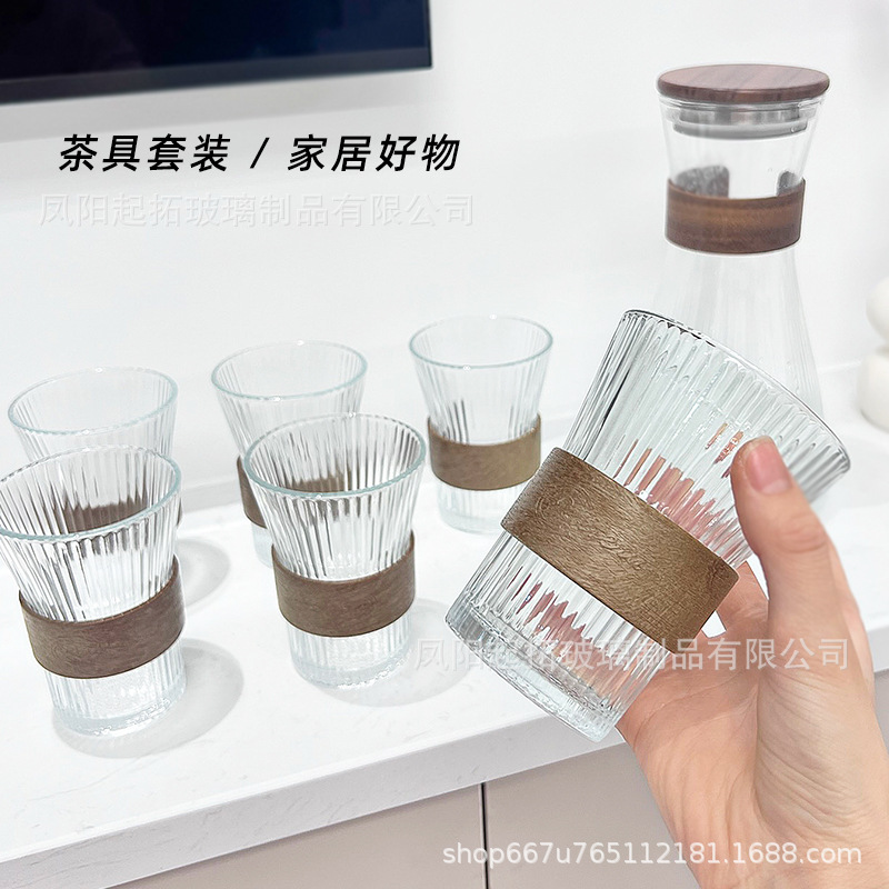 日本式縦紋ティーカップ個人専用ガラス断熱パーマ防止コーヒーカップラテカップ家庭用泡カップ