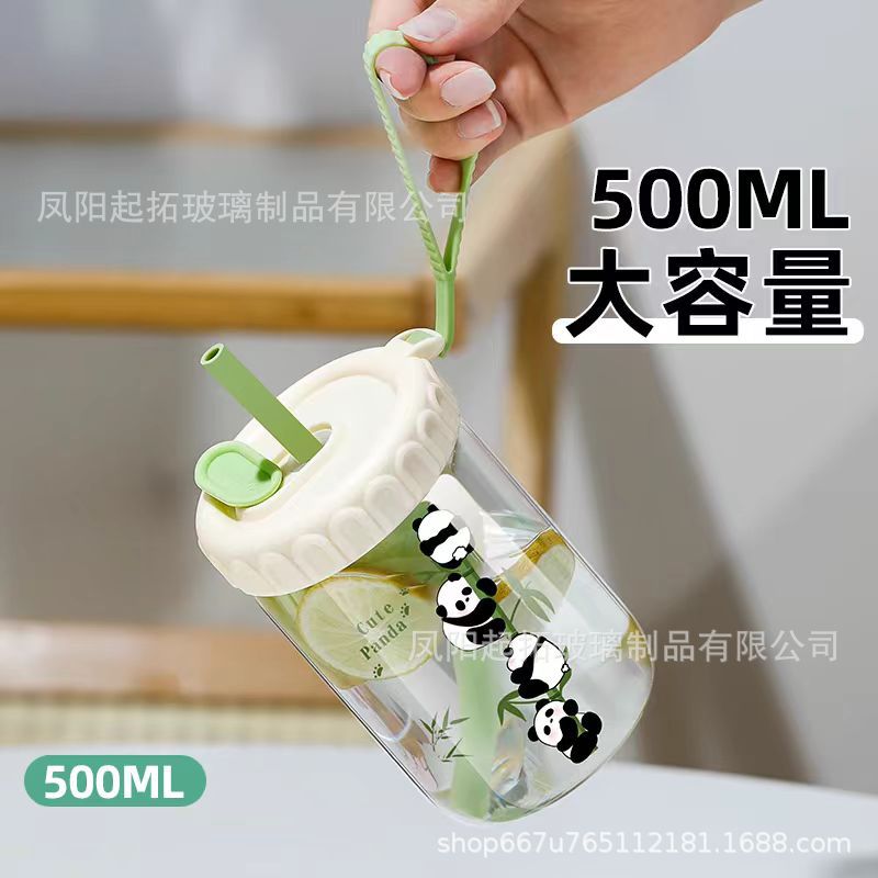 パンダのかわいいグラスのお茶の分離コップの学生の携帯のホウ素のシリコンのコップは蓋のストローのコップのお茶の漏れのコップがあります。