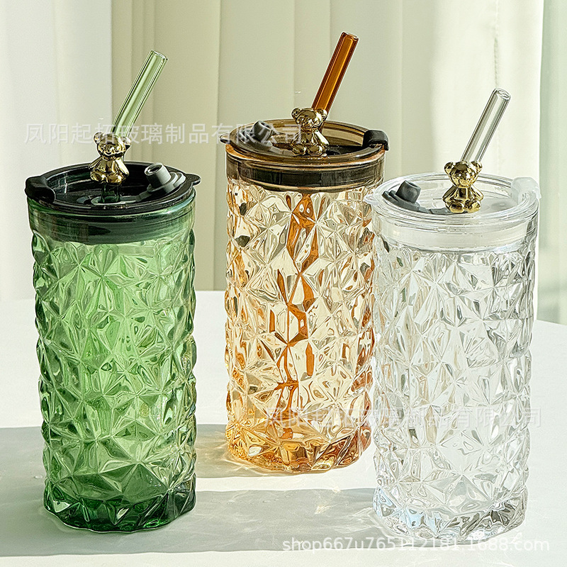 高颜値insジュースミルクカップヨーロッパ式家庭用ダイヤモンドカップカラーガラス厚さ鉛フリーストローカップ