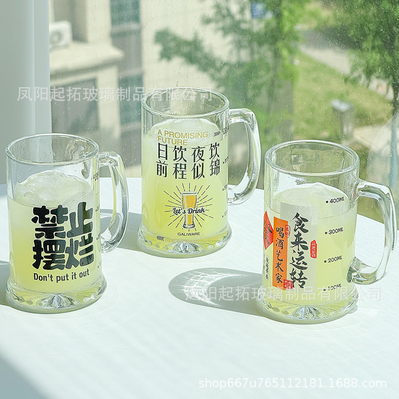 500mlコピーザビールカップハンドル付きクラフトビールグラス商用ネット赤クリエイティブバーベキュー店大容量グラス