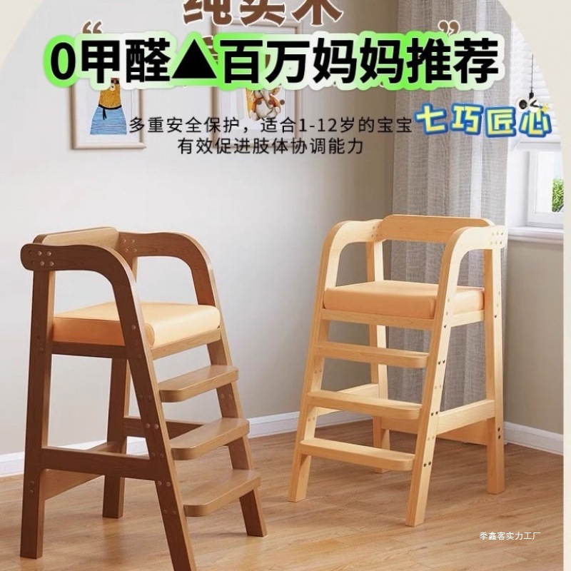 木の子供の食事椅子の木製の赤ちゃんの家庭用高足腰掛けの実木の食事椅子は幅を広げて昇降します。