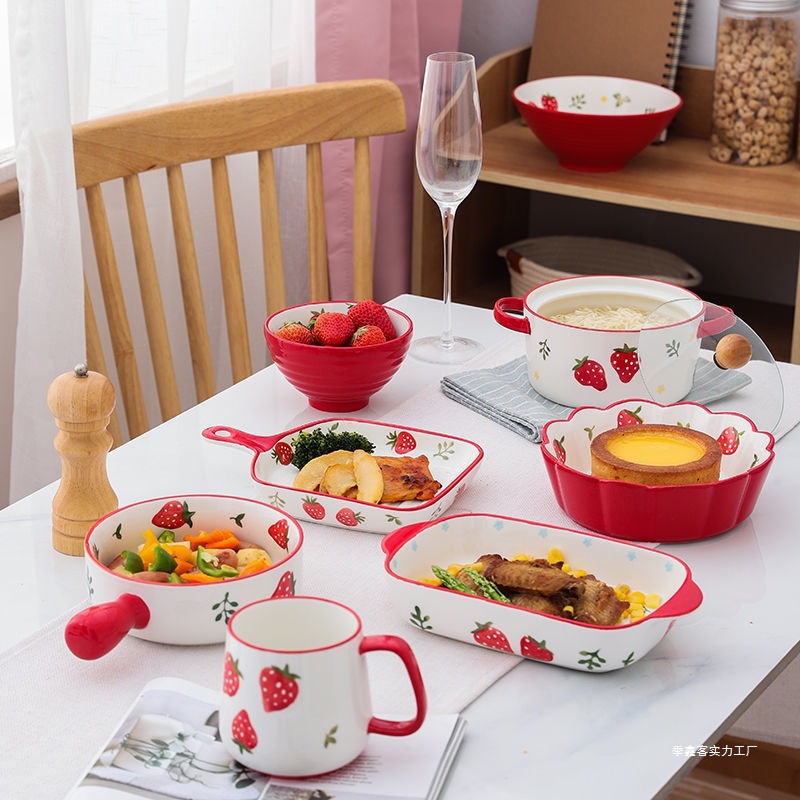 焼き蓋付きネット赤カップラーメン代発いちご焙煎陶磁器食器セット学生寮ボウルハンドル日本式手描き