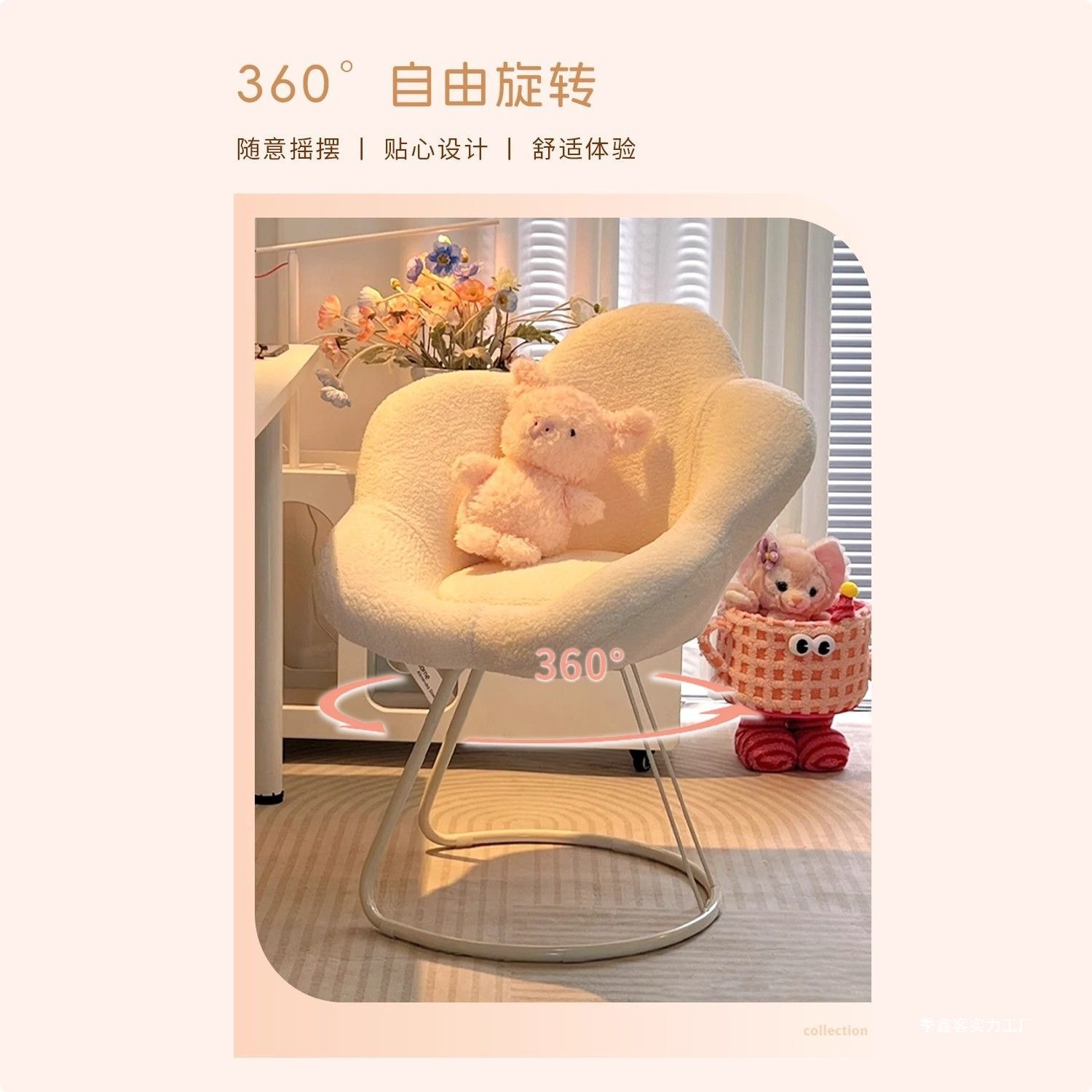 ネットの赤い化粧椅子の背もたれの化粧台の椅子のクリーム風の腰掛けの女子学生の寝室の花びらの椅子は回転することができます。
