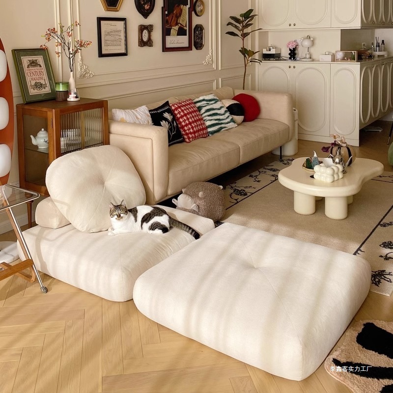 クリームシングルソファー小戸型客間湯葉麻芋ソファベッド折り畳み両用モジュール怠け者折り畳み可能