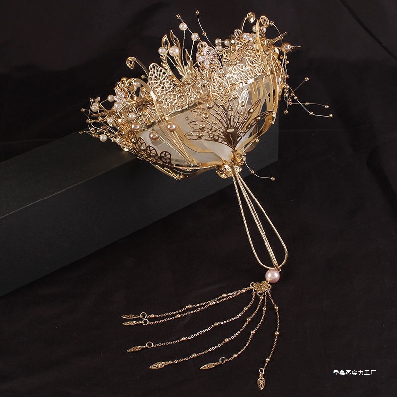 花嫁のゴールデンブーケ結婚式新しい韓国花ウェディングドレス写真スタジオ撮影小道具白いガーゼブーケ