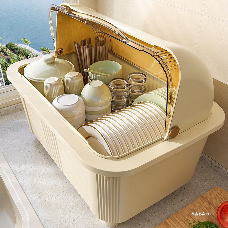 食器収納ボックス、食器収納ラック、キッチン食器、家庭用防塵収納ラック、蓋付き排水ボウルキャビネット