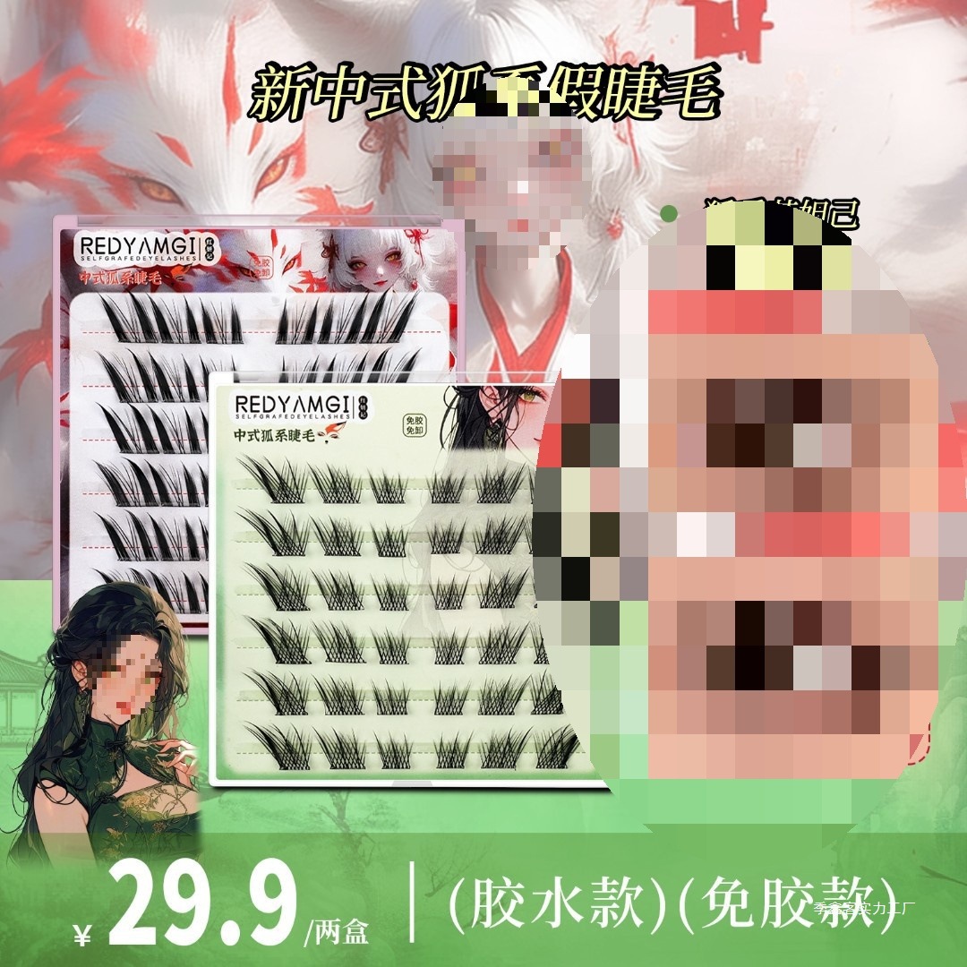 Honyanji フォックスつけまつげ セグメント化されたナチュラル Suda Ji 女性用 シングルクラスター 九尾キツネ 接着剤不要の自己粘着