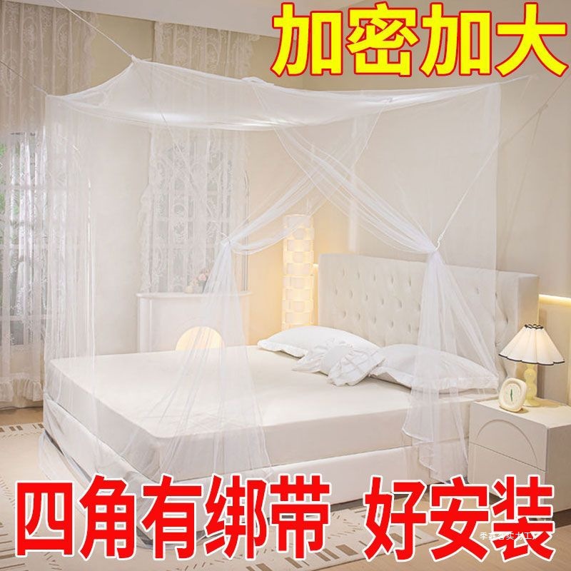 昔ながらの家庭用蚊帳、暗号化された防蚊寝室ダブルベッドテント、伝統的な四角いトップテント、結束ロープ付きシングルドア