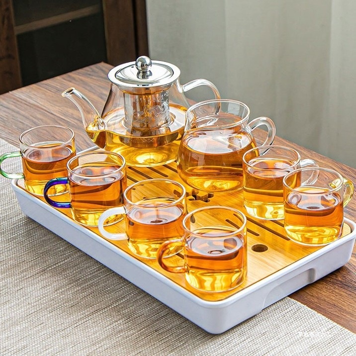 ガラスティーセット、家庭用ティーカップ、オフィスカンフーティーセット、ティーポット、シンプルな小さなティーテーブル、茶道、趙志孫