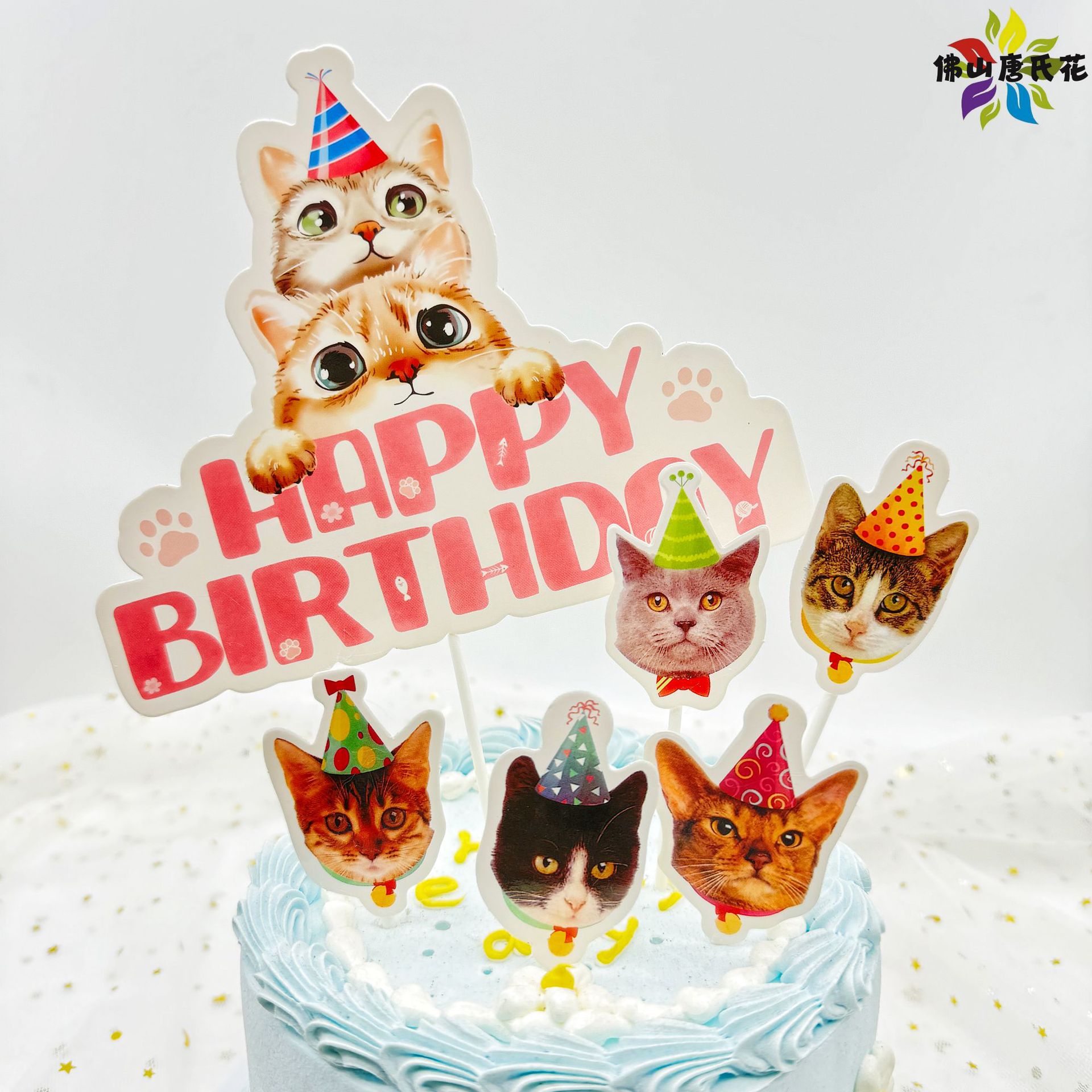 ケーキ装飾プラグインセット猫誕生日ケーキ装飾ベーキングプラグイン誕生日おめでとうネット糸五角星挿し
