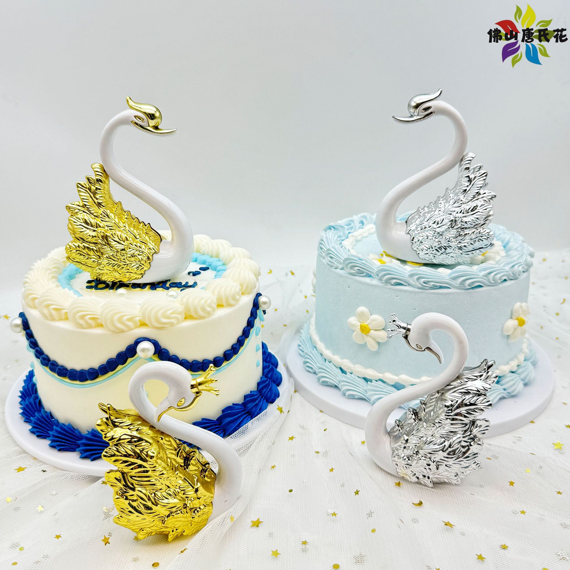 ケーキの装飾の置物バレンタインデーの金の銀色の王冠の白鳥の誕生日のケーキの結婚式のデザート台の装飾の置物