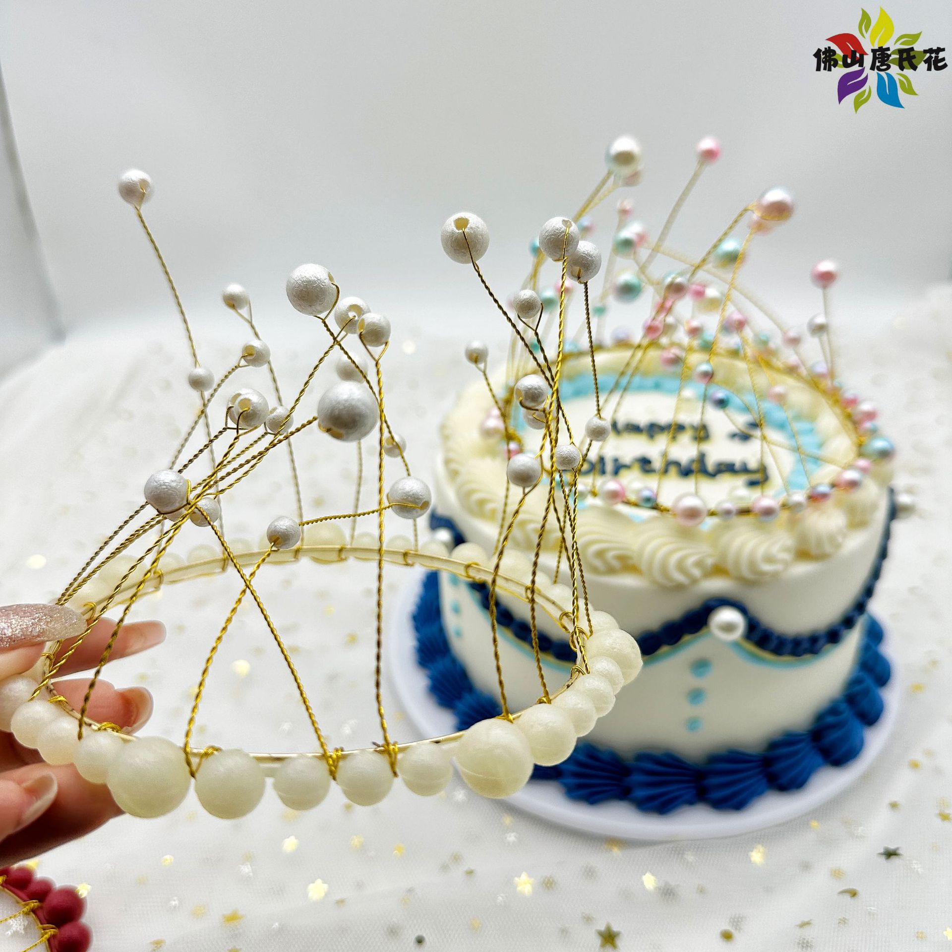 誕生日ケーキ流蘇白真珠海草クラウン金色ロマンチック頭飾り祝日花焙煎デザート台装飾