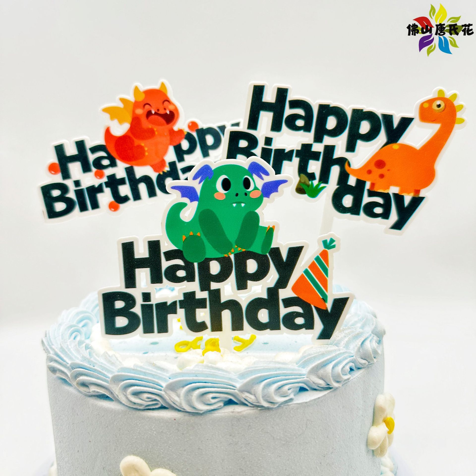 漫画恐竜アクリルケーキ挿入誕生日おめでとう子供テーマ誕生日パーティーケーキ装飾挿入