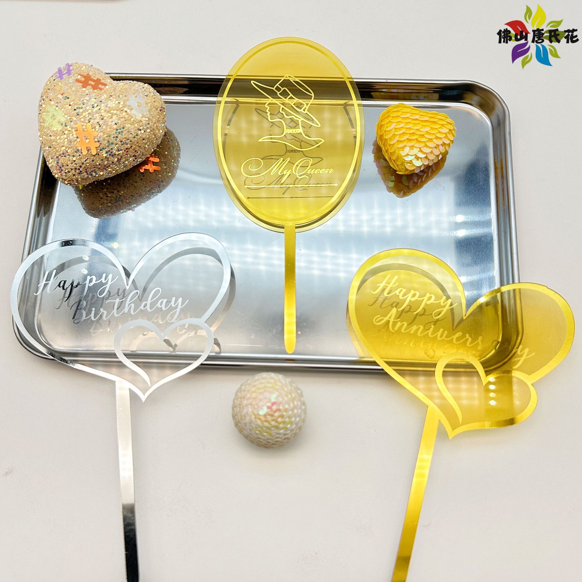 単色アクリルカード黒金愛アクリルケーキカードパーティー焙煎装飾用品