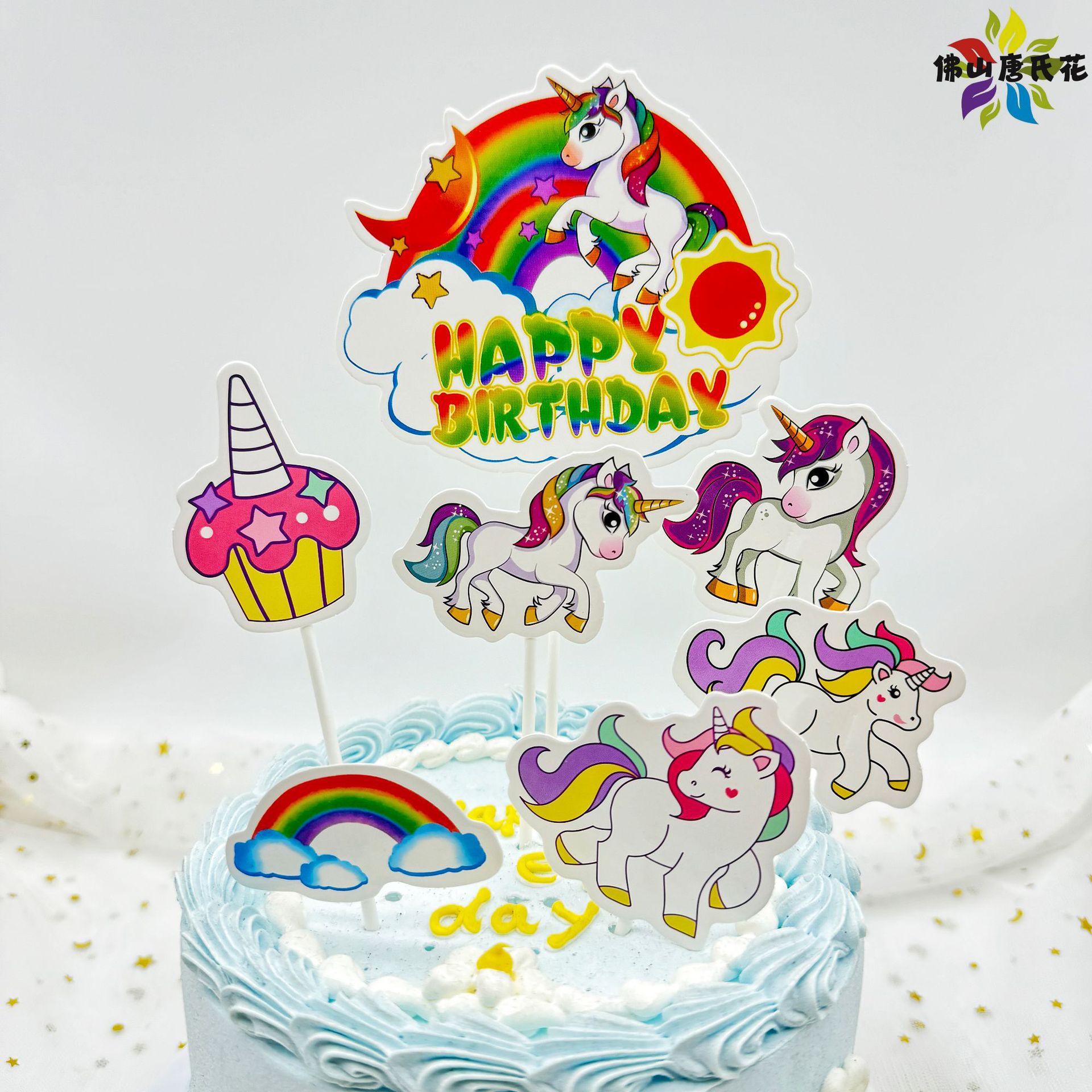 ケーキ装飾漫画ユニコーンケーキ挿し込み誕生日おめでとう子供テーマ誕生日パーティーパン