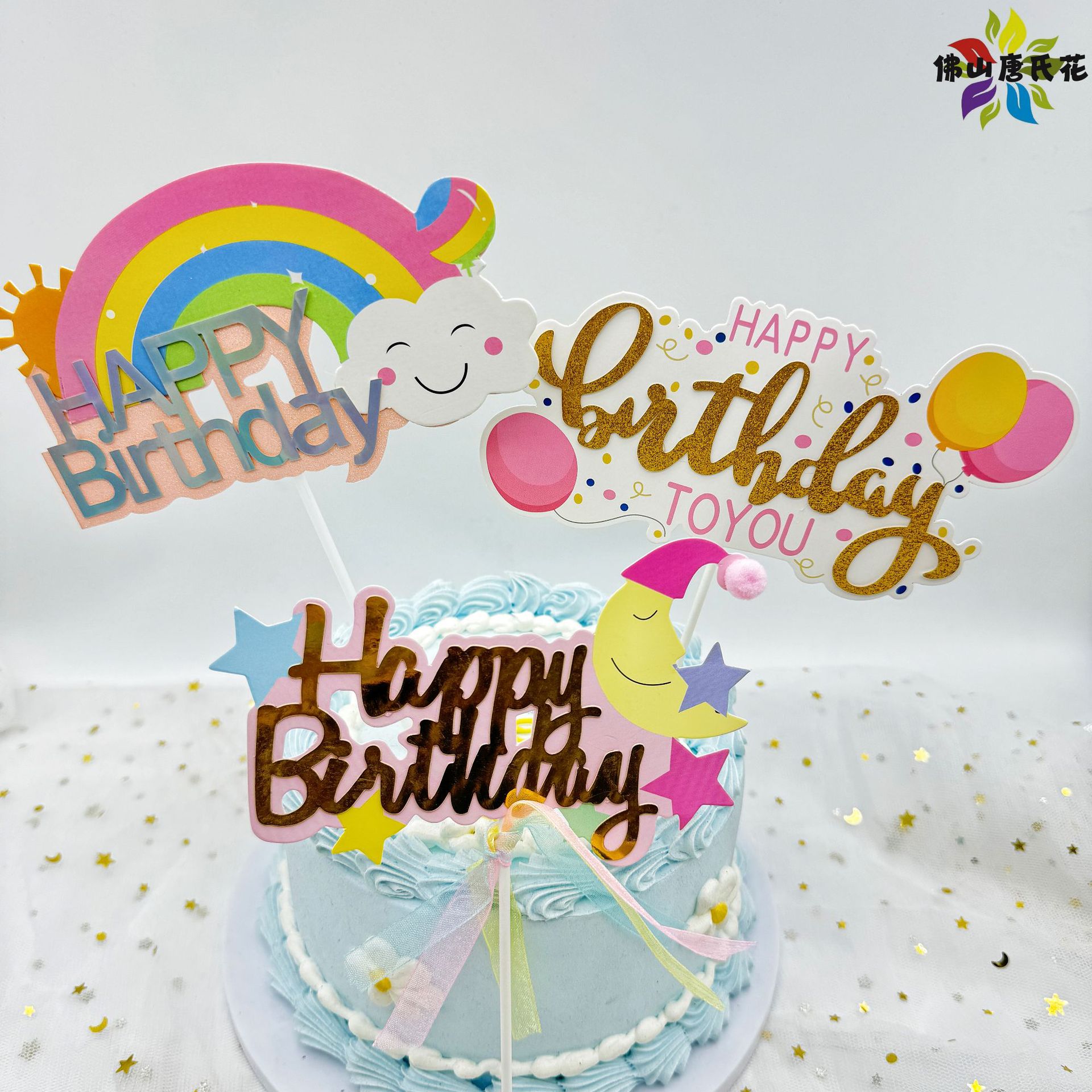 ケーキ装飾虹雲二重誕生日ケーキカードプラグイン誕生日おめでとう男の子女の子パーティーカード