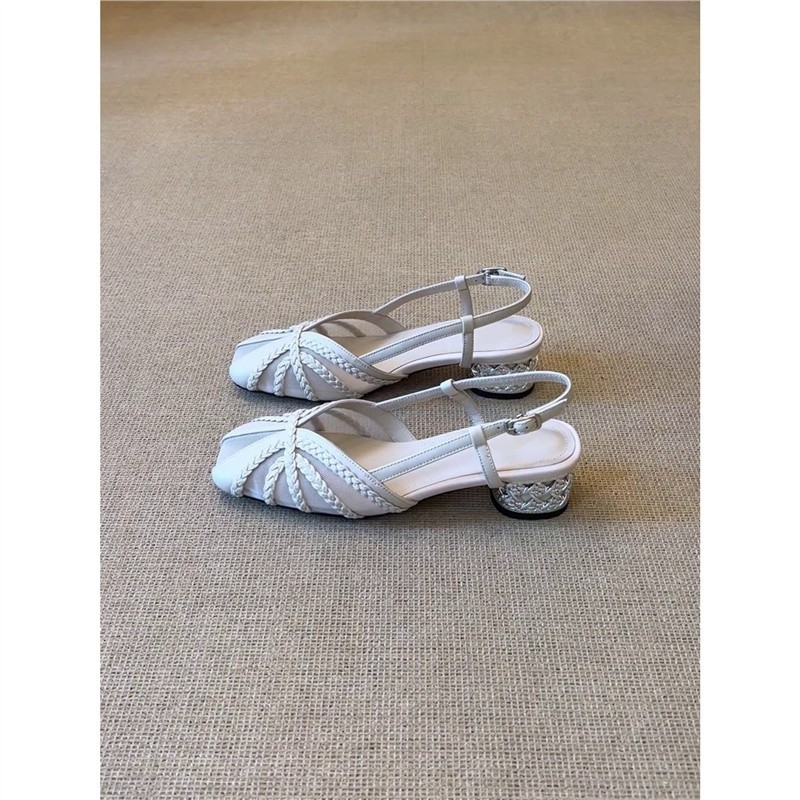 シープスキンバージョン〜フレンチレトロスクエアトゥメッシュ織り太ヒールハイヒールサンダルフェミニンで万能なローマンシューズ