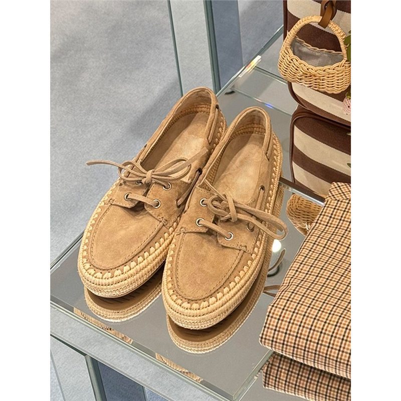 牛革バージョン~2025年新作ミュウ風本革フロストローファーレディースフラットソフトソールスリッポンビーニーシューズ