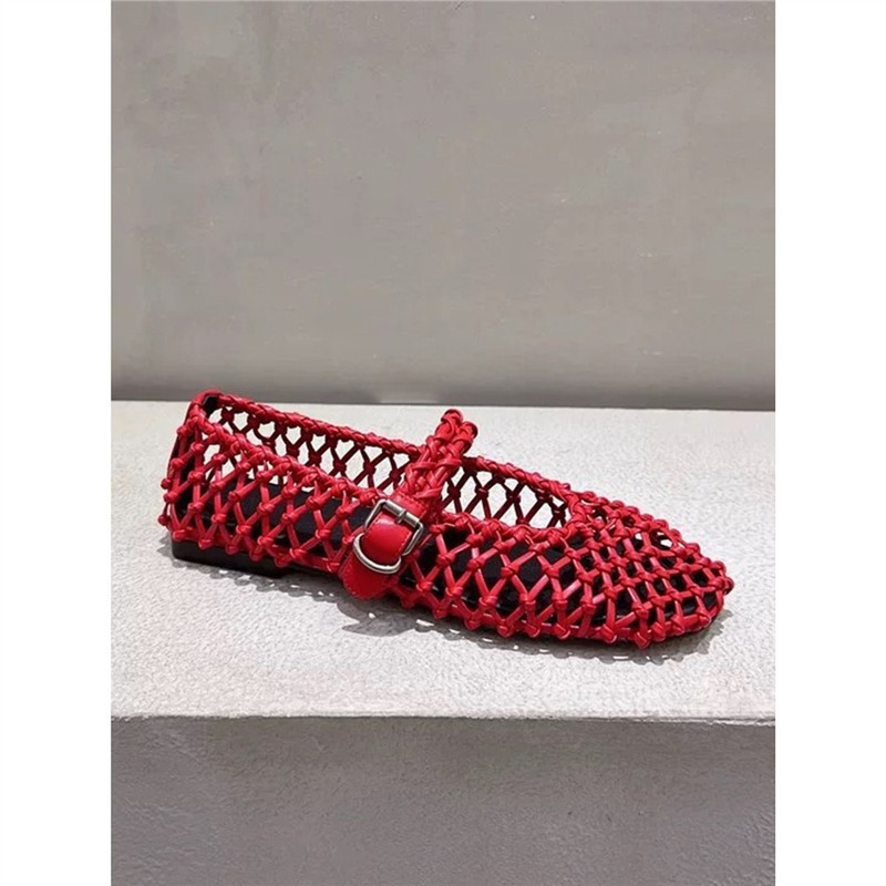 シープスキンバージョン~2025新しいニッチ手織りワンストラップメリージェーンシューズレディースフラット中空イブニングシューズ