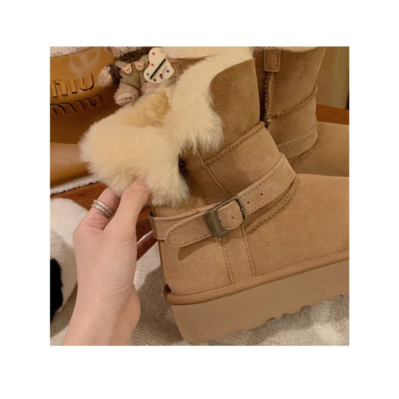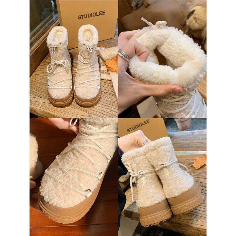 Grape Mom Studiolee ストラップデザイン暖かい東北綿靴毛皮のような厚底スノーブーツ女性の秋と冬