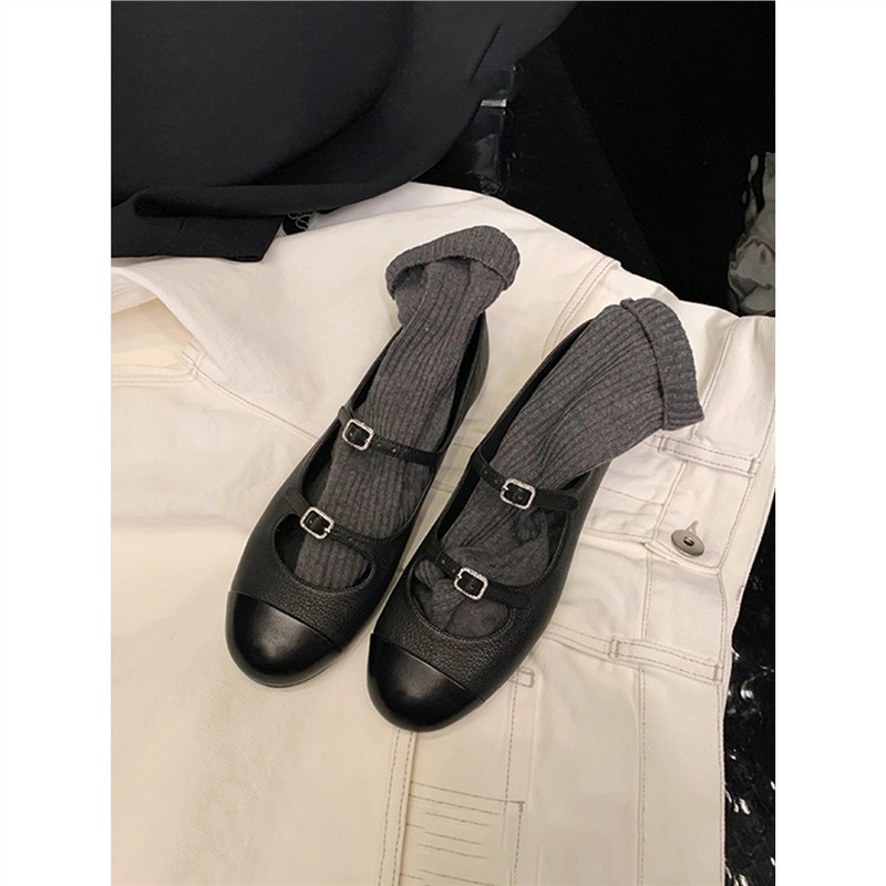 シープスキンバージョン~2025年新作ソックスTバックル付きフレンチメリージェーンシューズレディースフラットイブニングスタイルレディースシューズ