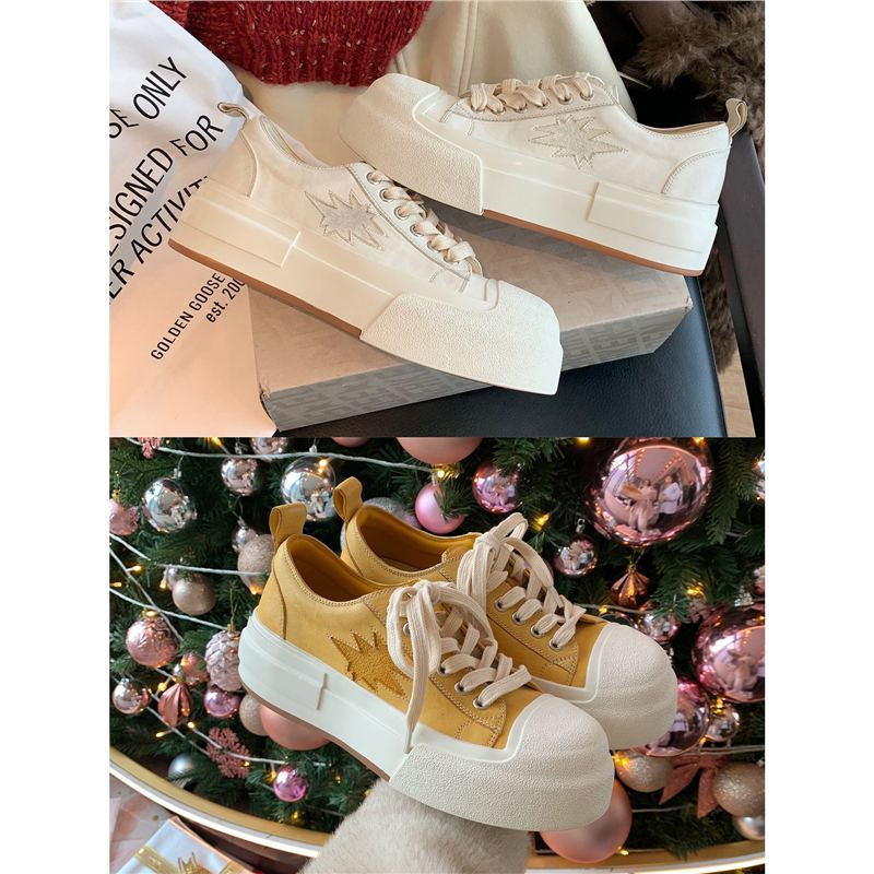 牛革バージョン〜ヨーロッパステーションの厚底スター白靴レディースラウンドトゥカジュアルスポーツスニーカーロートップレディースシューズ