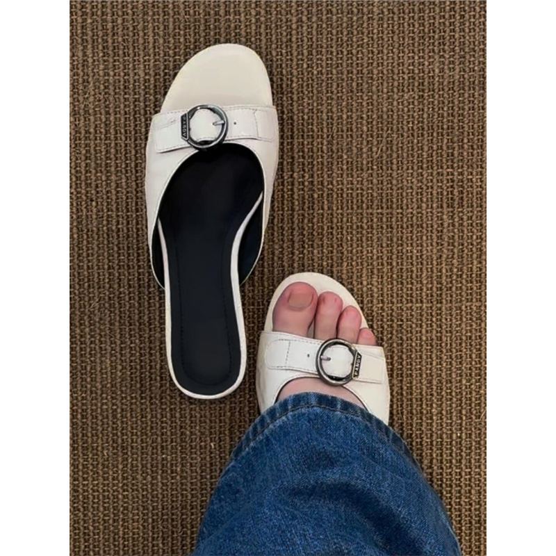 牛革バージョン〜韓国版ニッチ本革つや消しスリッポン女性用夏アウター厚底ビルケンシュトックレディースシューズビーチサンダル