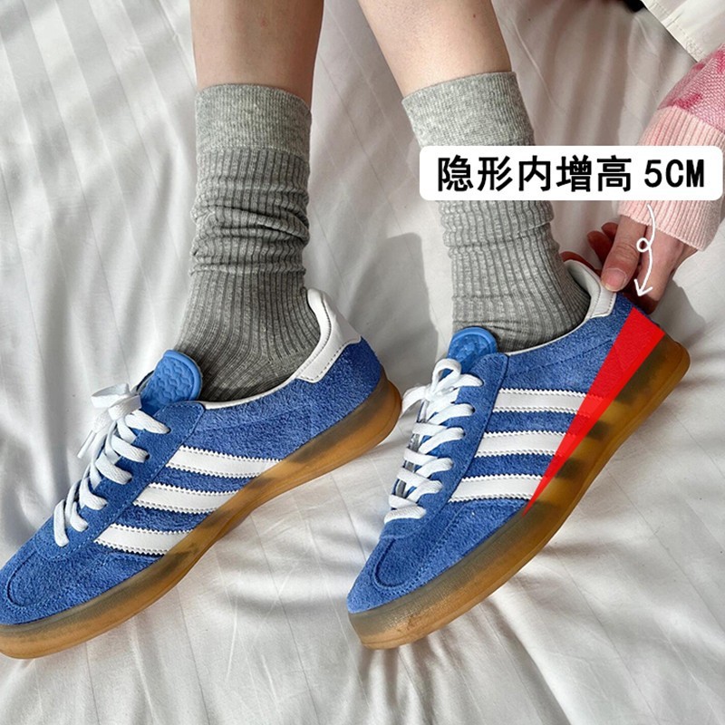 牛革バージョン~目に見えないインナー高さの青い3本ストライプの女性用ドイツ訓練靴、厚底、軽量、通気性、スポーツとレジャーの女性用靴