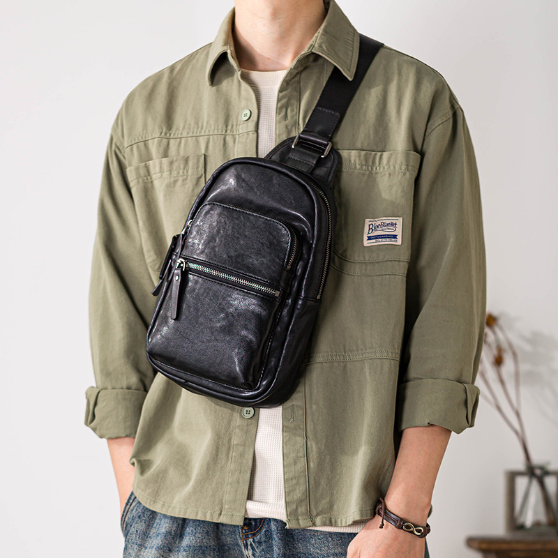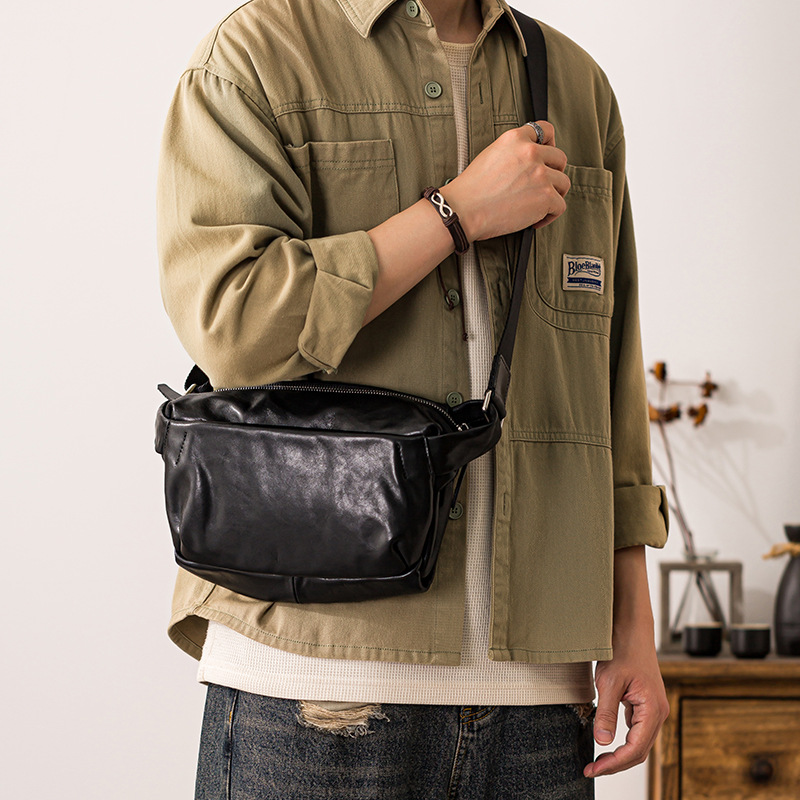 本革日本製小胸バッグメンズトレンディなトップレイヤー牛革カジュアルクロスボディバッグ作業着ショルダー携帯電話バッグバックパック女性用