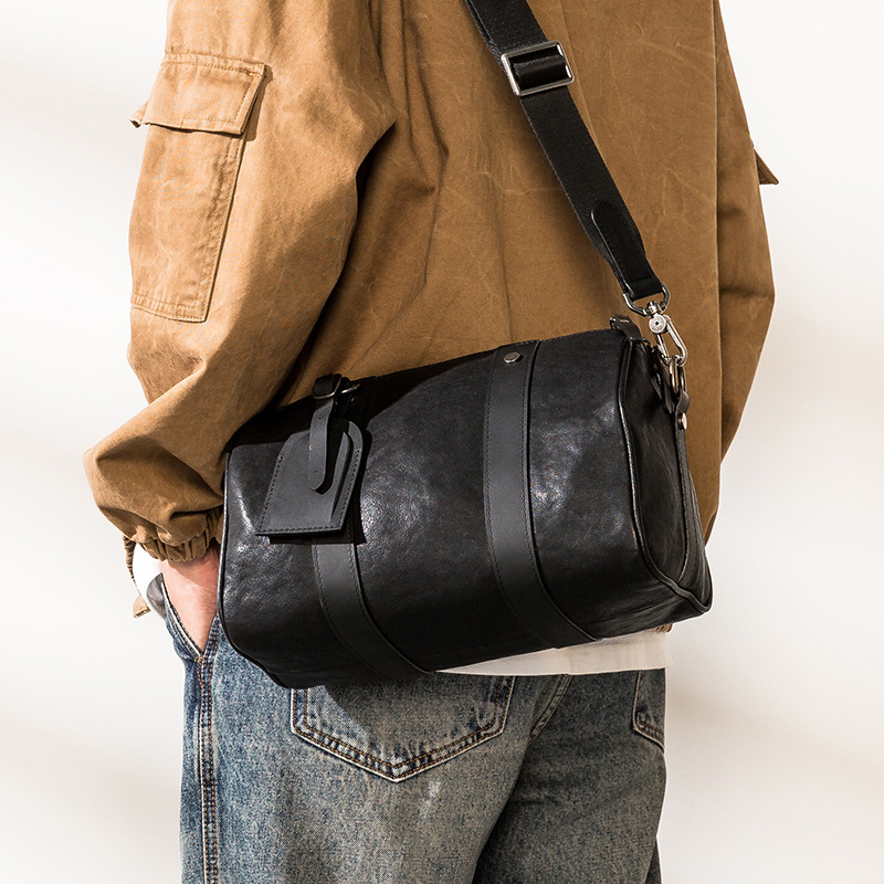 本革メンズクロスボディバッグ、第一層植え牛革、韓国風通勤ショルダーバッグ、多用途カジュアルトレンドスポーツバックパック
