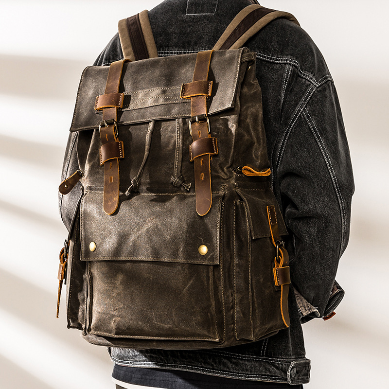 オリジナルレトロパーソナライズされた大容量バックパックオイルワックスキャンバスクレイジーホーストレンディなブランドバックパック旅行登山アウトドアスクールバッグ