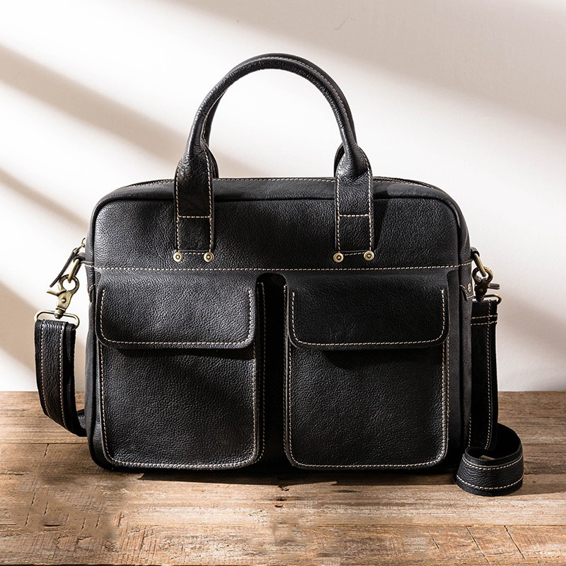 本革メンズカジュアルポータブルブリーフケース、シンプルで多用途なショルダークロスボディバッグ、牛革ビジネス横型コンピューターバッグ、トレンディ
