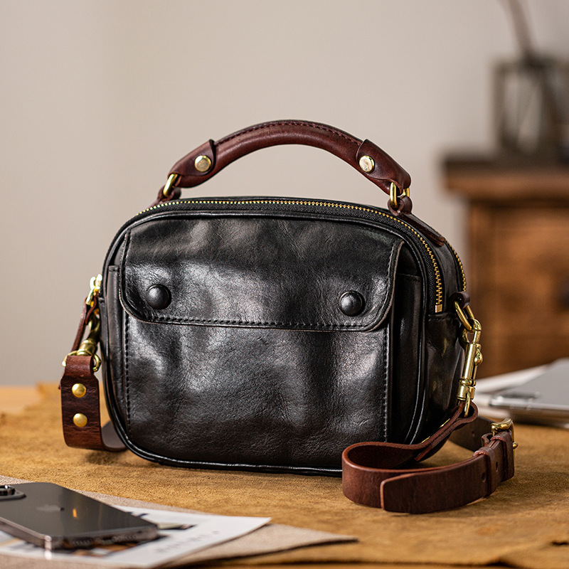 ニッチ本革メンズ通勤カジュアルショルダークロスボディバッグレトロ第一層植物タンニンなめし牛革コントラストカラーハンドバッグ女性用