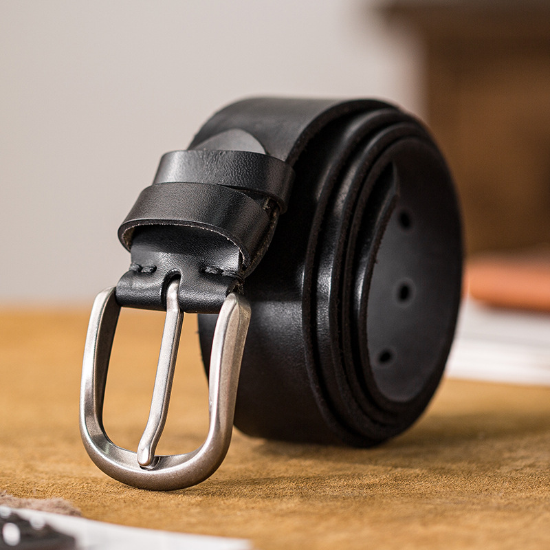 本革レトロピンバックルベルトユースハンドメイド本物の純粋な牛革カジュアルデニム作業着オートバイメンズベルトベルト