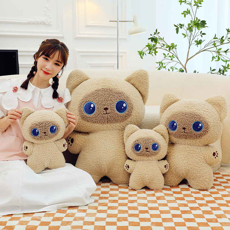 新商品のネットはかわいい青い目の猫のぬいぐるみの猫の子供を抱いて枕の人形のキャッチャーのはさみ機のメーカーを抱いて卸売りします。