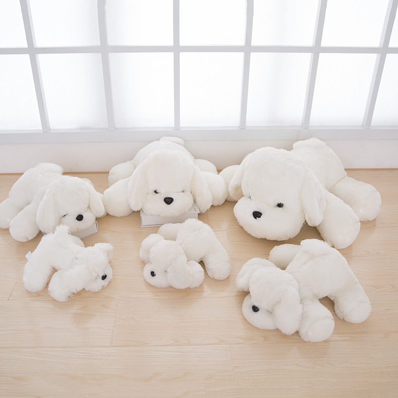 新しいかわいいかわいいかわいい犬の人形は犬の人形に腹ばいになっている白い小さな腹ばいになっている犬のぬいぐるみの子供の祝日プレゼントです