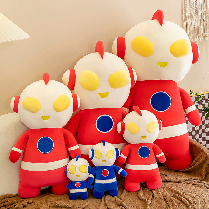 かわいいウルトラマンぬいぐるみメーカーのベッドで人形をなだめます。
