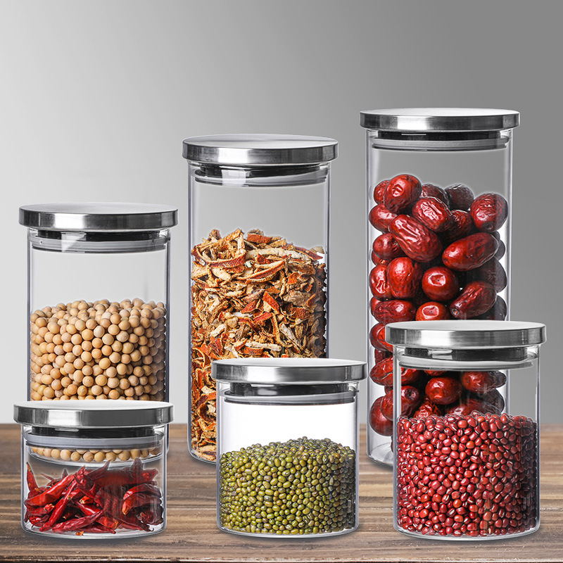 ガラス密封缶蓋付き透明雑穀収納瓶茶葉缶保存缶粉ミルク缶ガラス缶