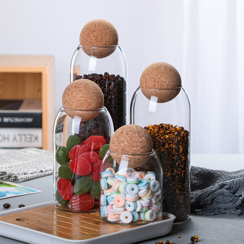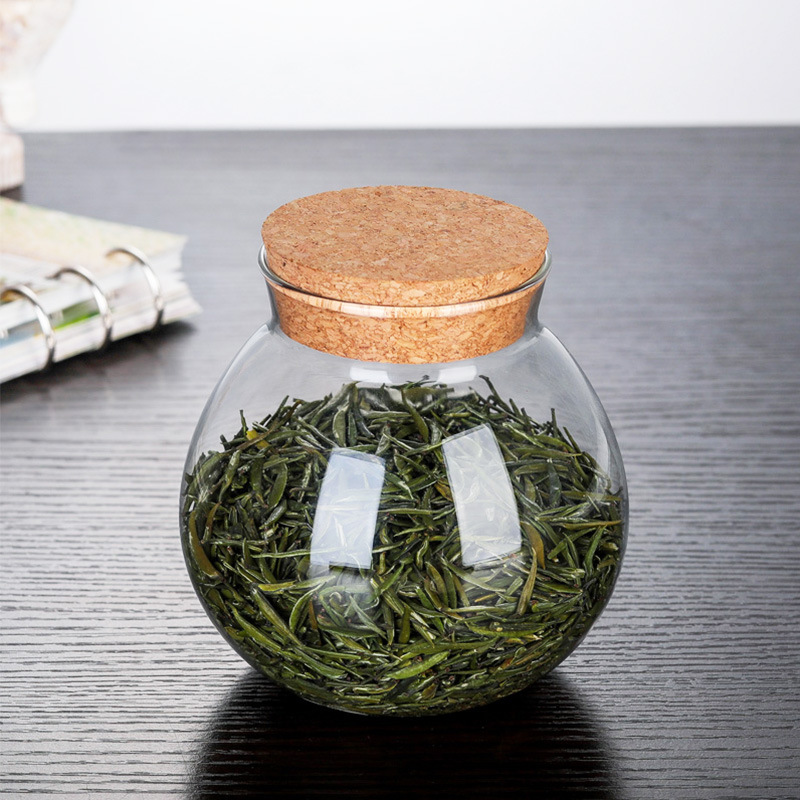 卸売り透明ガラス貯蔵缶茶葉缶コルク栓密封缶円形貯蔵缶ドライフルーツ収納缶