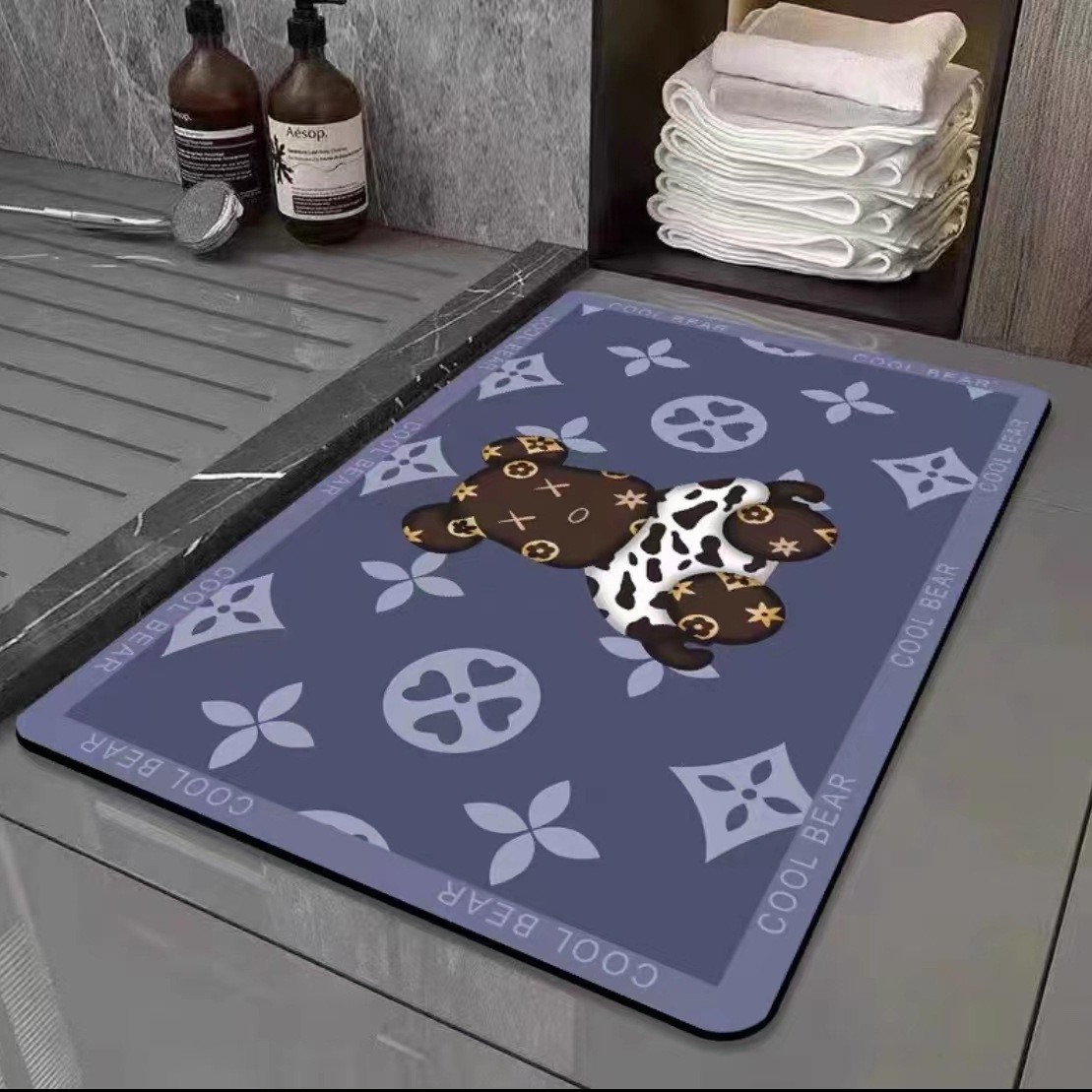 漫画熊珪藻泥吸水地マットトイレ速乾足マットトイレ浴室入り口滑り止めマット家庭用