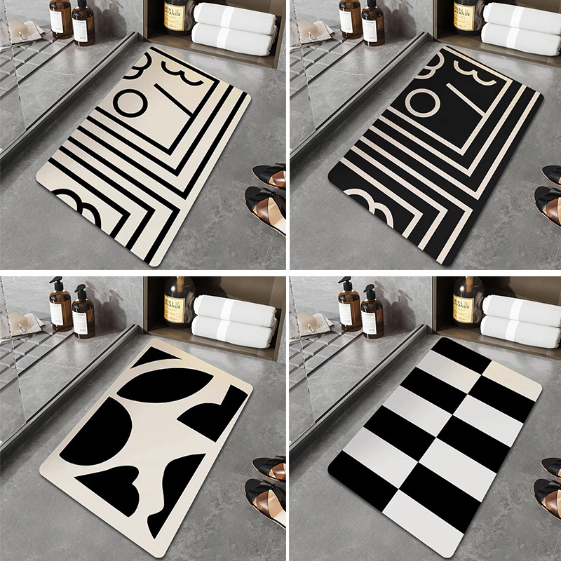 ディザトーンの新しい水晶絨毛マット吸水マット滑り止めマット白黒縞入戸門じゅうたんトイレマット