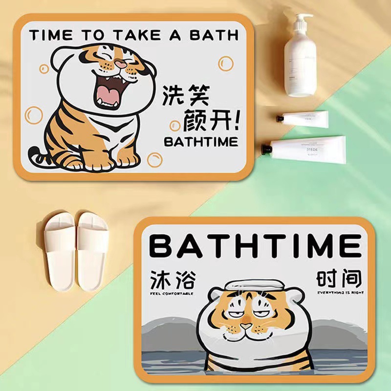 アニメ家庭用ソフト珪藻軟泥マット太った萌え虎プリント風呂吸水滑り止め足マット